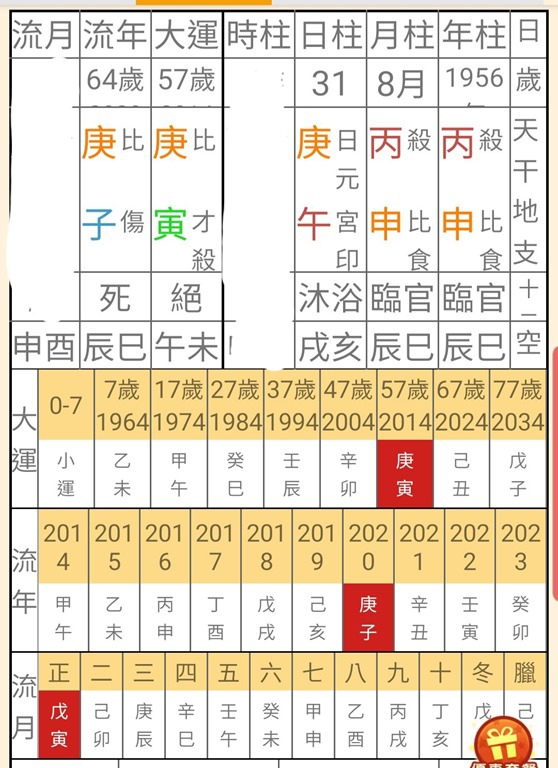 2020庚子流年,天干的庚一樣可以幫盜雙七煞的氣場,只是流年的氣沒有大運來的強。